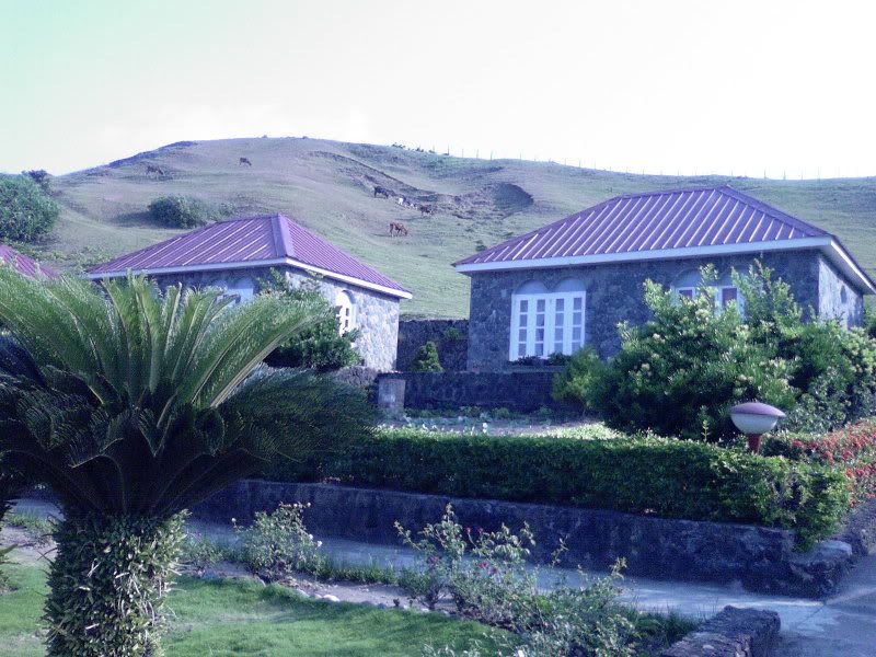 We stayed at Batanes Resort, which is around 5-10 minutes away from the capital city of Basco... it's in a secluded corner on the outskirts, overlooking the sea. Peter and I stayed in Room Basco-A, which was the west-side room of the cabin at the highest point of the resort, just beside the wall separating the resort grounds from this hill where a bunch of cows grazed day in and day out. ...Like I said, lots of cows. @_@