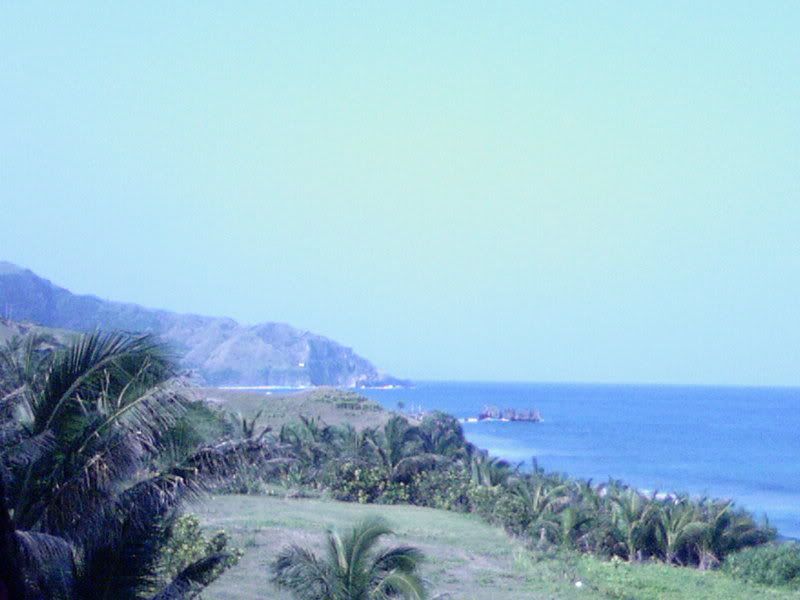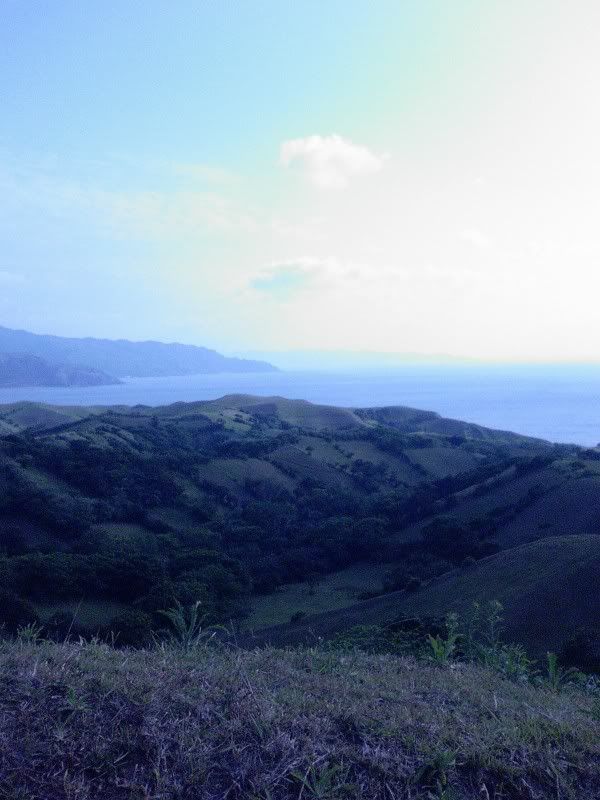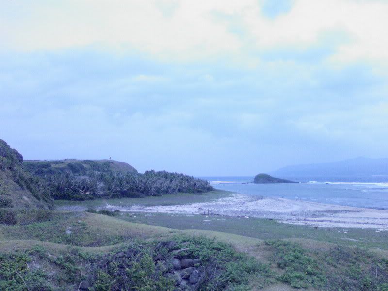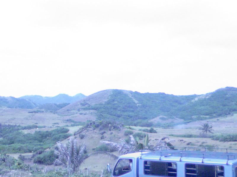 We ate lunch in this open valley with nipa huts and this beautiful vista of the shoreline versus rolling hills. The hills had ripples etched into the stone by the wind; the maintainers of the rest place we stayed in were growing watermelons. This fascinated pretty much all of us -- it turns out that a lot of us actually haven't seen watermelons growing in the ground. o_o