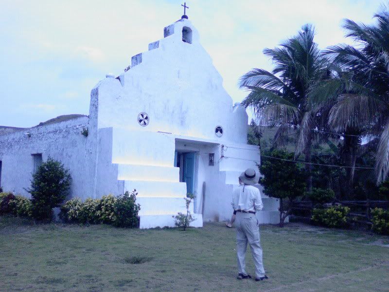 We dropped by another church before lunch... Sto. Domingo, if I'm getting my sites right. It was, for awhile, a church shared by all of the residents in three of the islands in Batanes. Now there are more than enough churches and chapels to go around for the 16,000 inhabitants of the region. Peter was tired of stopping over at churches, so he stayed in the jeepney to take a nap; I eventually joined him. The sea breeze was wonderful where he was.