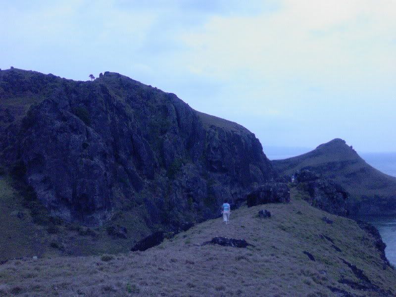 I think Mom lost her heart to Batanes the moment we got to this site -- she just walked all over the place, enjoying the breeze and looking off towards the sea. My Tita Alen and I stayed at one of the points and talked about random stuff before we went down to join my Dad and my little brother, who were sitting on the grass and talking about their own small things. Peter and I then spent the rest of our time watching the swallows attempt to beat the roaring winds by flying low or boomeranging themselves over the hilltops.
