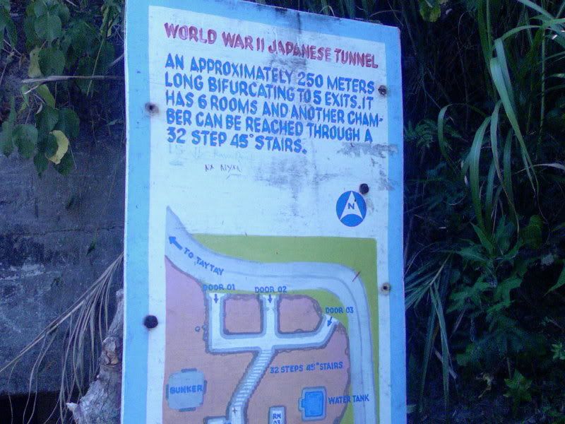 The first stop after lunch was this new church under construction -- the interior was pretty nice -- and then we headed back up into the hills. We even dropped by this radar-less PAGASA radar station (they lost the equipment during a really bad typhoon): the view from its location was really nice. The thing, however, that really caught our attention was the World War II-era shelter built by the Japanese (click here for the sign). Here's one of the entrances by the road we took:
